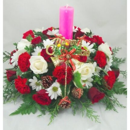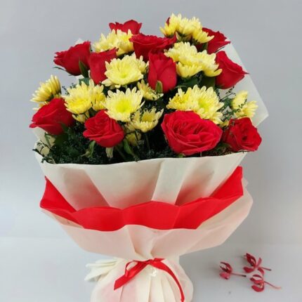 12 red roses 5 white chrysanthemum This romantic bouquet of season’s best mixed flowers, Will make your loved one feel