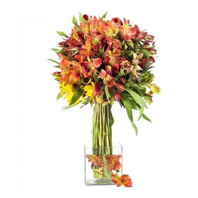 An always-impressive arrangement of 30 alstroemeria flowers,