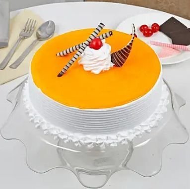 Product Details: Cake Flavour- Mango Type of Cake- Cream Shape- Round Candles & Knife Included Please Note: The cake stand,