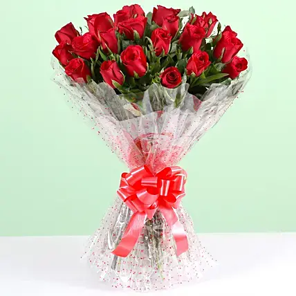 Two Dozen Farm fresh Long Stems Red Roses in a Elegant Bouqet.
