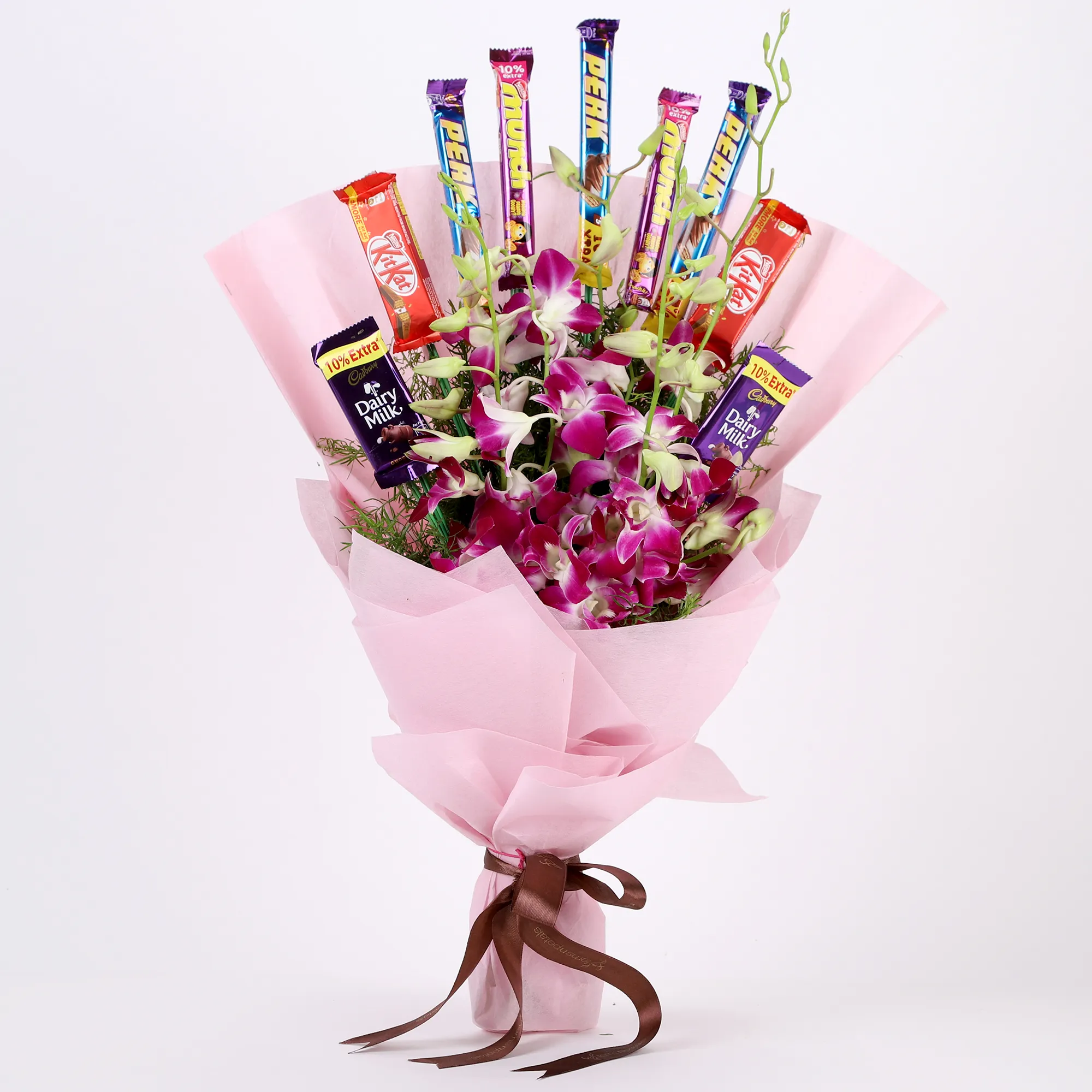 Be the first to review “True Feelings- Purple Orchids & Chocolate Bouquet” Cancel reply